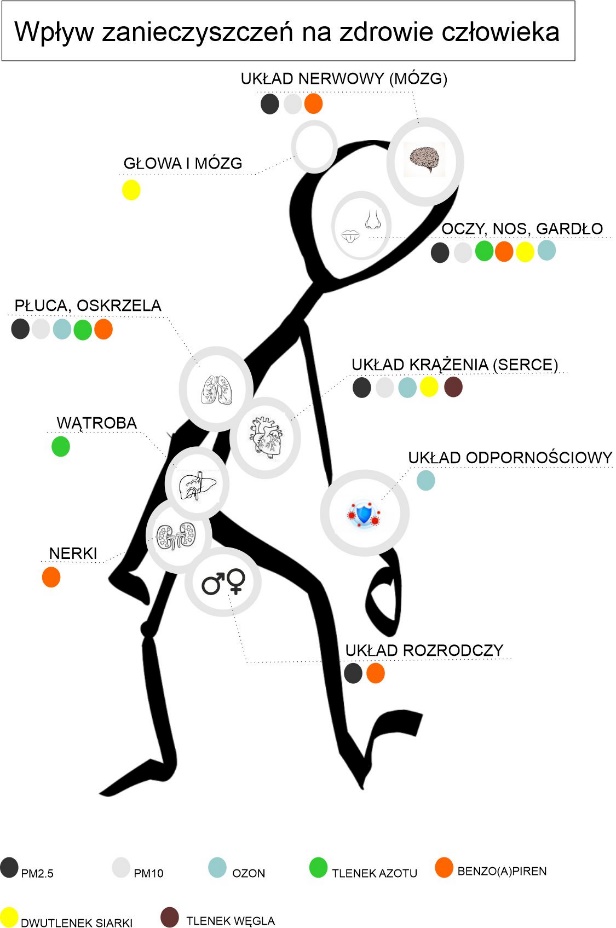 The proper functioning of the human respiratory system is greatly affected by both long- and short-term exposure to air pollution. Short-term exposure usually results in exacerbation of symptoms of already existing diseases. People in the vulnerable group are extremely sensitive to being in an area where the air is polluted, the exposure being of short duration with high concentrations of the pollutant. Such exposure can result in breathing problems, shortness of breath, coughing, rhinitis, eye irritation, and sinusitis. Exposure to the negative effects of air pollution starts in foetal life, which may result in the development of respiratory diseases (bronchial asthma, chronic obstructive pulmonary disease), as well as an increased incidence of lower and upper respiratory tract infections. Long-term exposure to air pollution may result in an increased incidence of upper and lower respiratory tract infections even at low pollution levels.