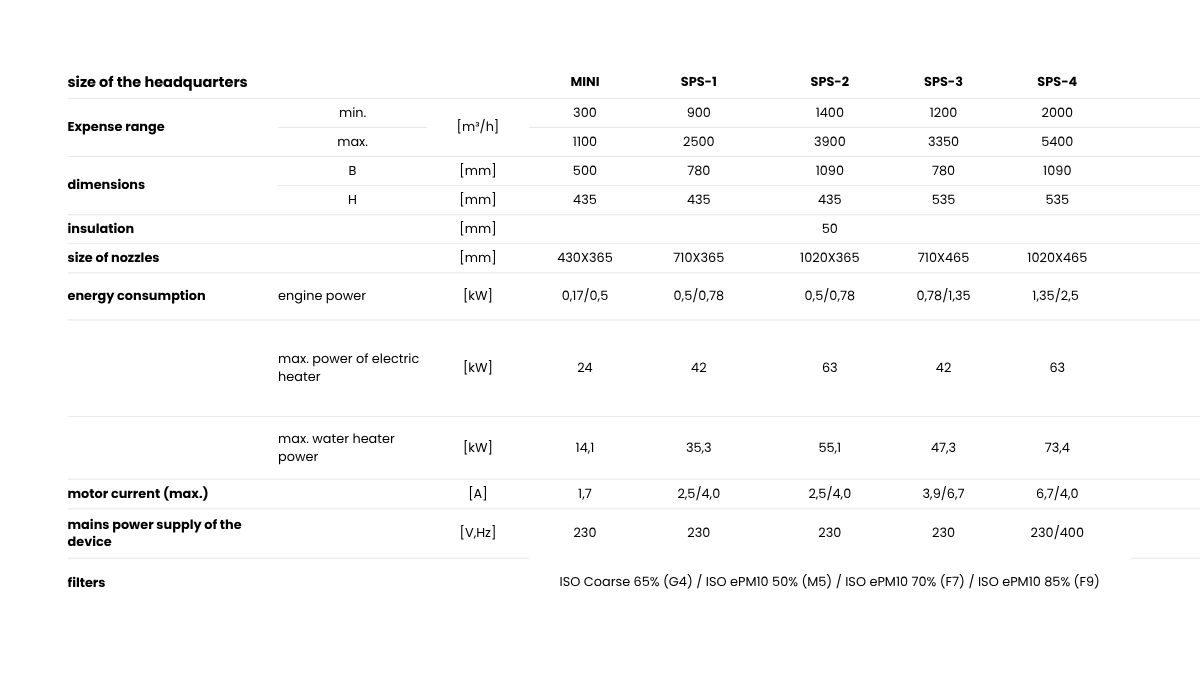 Thanks to the use of modern EC motors (IE4 class), the air handling unit achieves top performance while maintaining minimal energy consumption.
